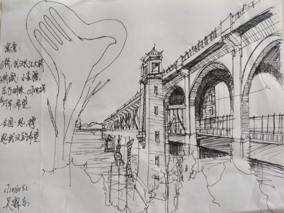 桥是武汉长江大桥,桥墩是广东的小蛮腰、上海的东方明珠、CCTV电塔……希望就在对岸,全国人民手拉手,共同走过,撑起武汉的希望。