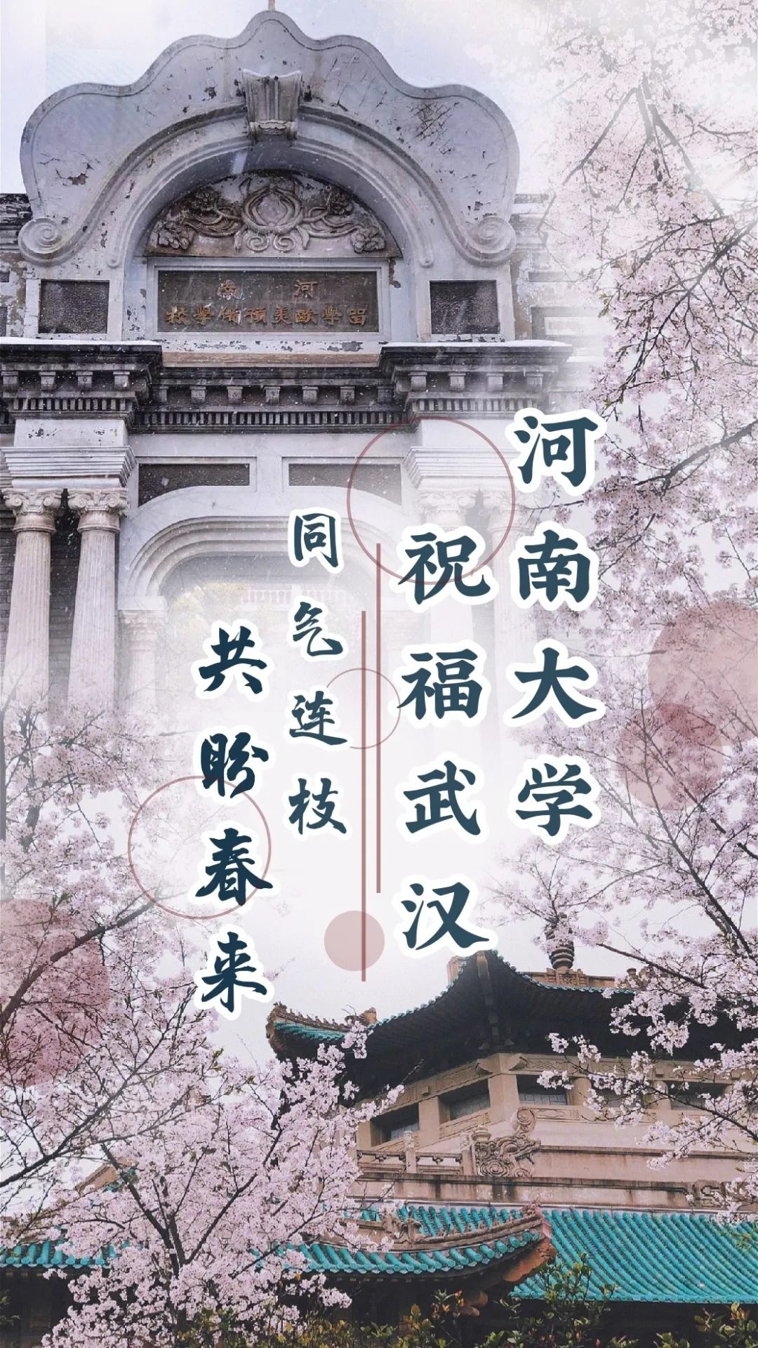 与武汉大学的标志性景观放于同一画面,意在表达“同气连枝,共盼春来”,待到樱花烂漫时,我们可以看见彼此口罩下的笑脸。